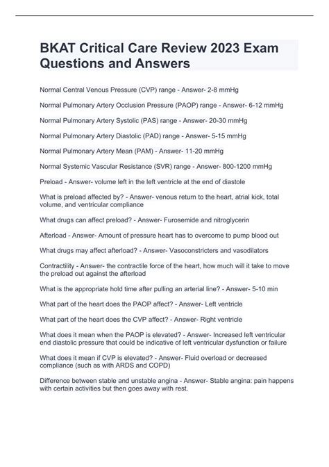 Download Bkat Exam Sample Test Critical Care Questions Reader