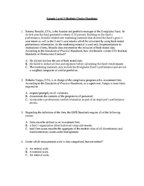 Reading Online FREE 2007 SAMPLE LEVEL I QUESTIONS WOWPASS Doc BookBoon